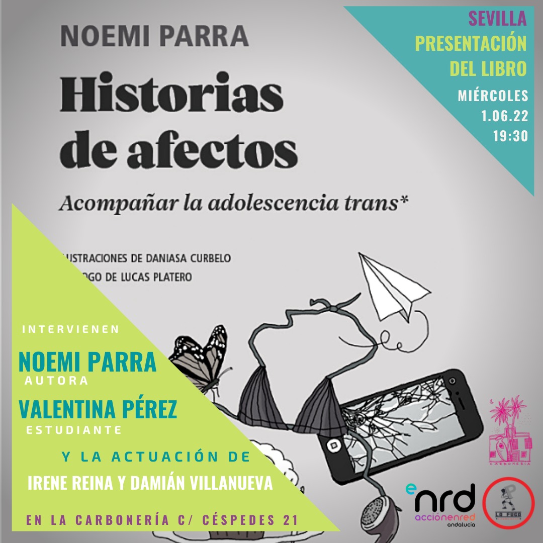 - Te esperamos en Sevilla el miércoles 1 de junio a las 19´:00h en el icónico patio de La Carbonería (C/Céspedes, 21). El broche final a esta velada al fresco lo pondrán Irene Reina y Damián Villanueva que nos deleitarán con un repertorio de copla anclada en disidencias sexuales. Colabora La Fuga Librerías y La Carbonería.