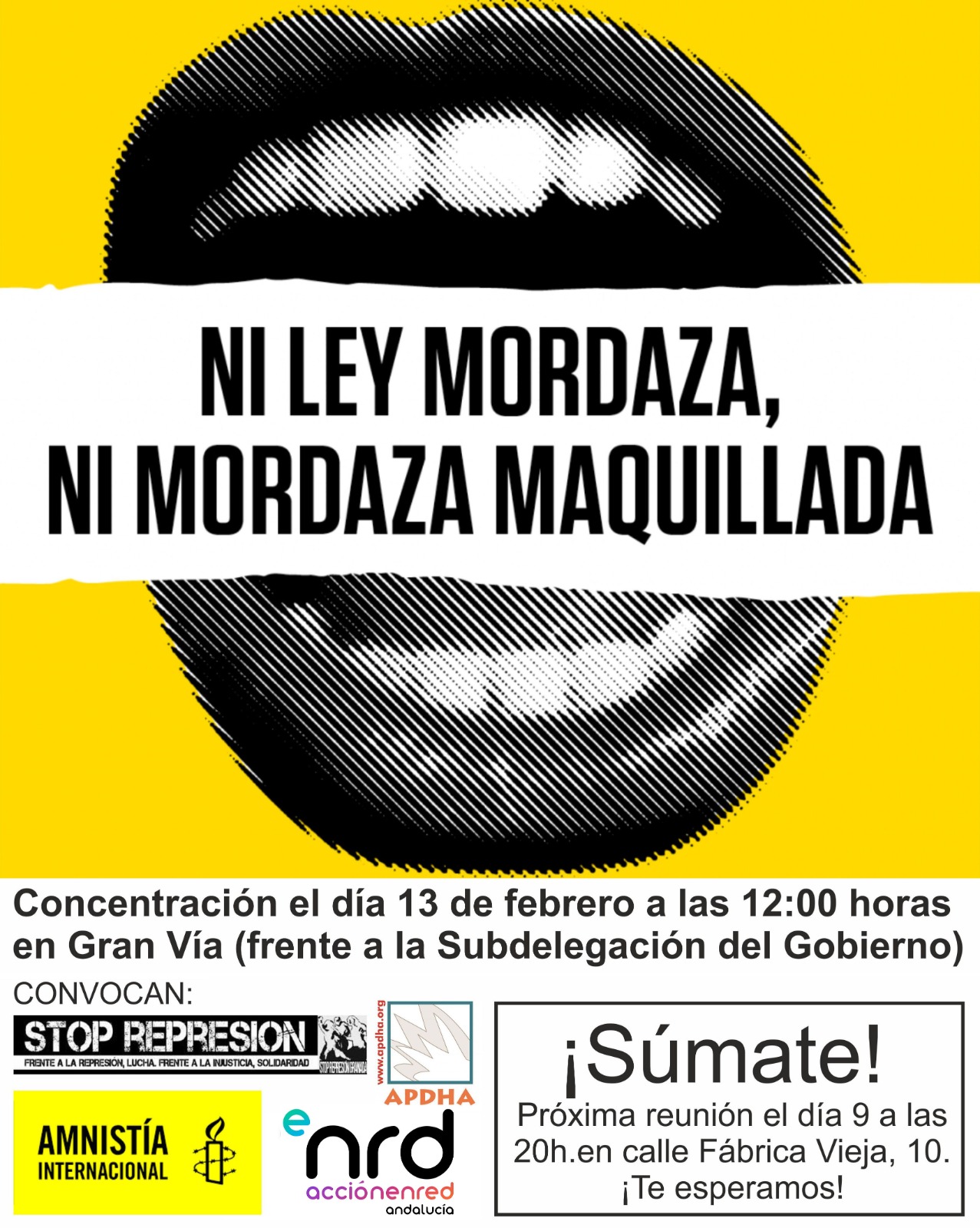 Tenemos muchos motivos para salir a la calle a exigir que no queremos ninguna mordaza que vulnere nuestros derechos y libertades. Hagamos que el 13 de febrero seamos miles en las calles dejando claro que queremos acabar de una vez por todas con las mordazas.