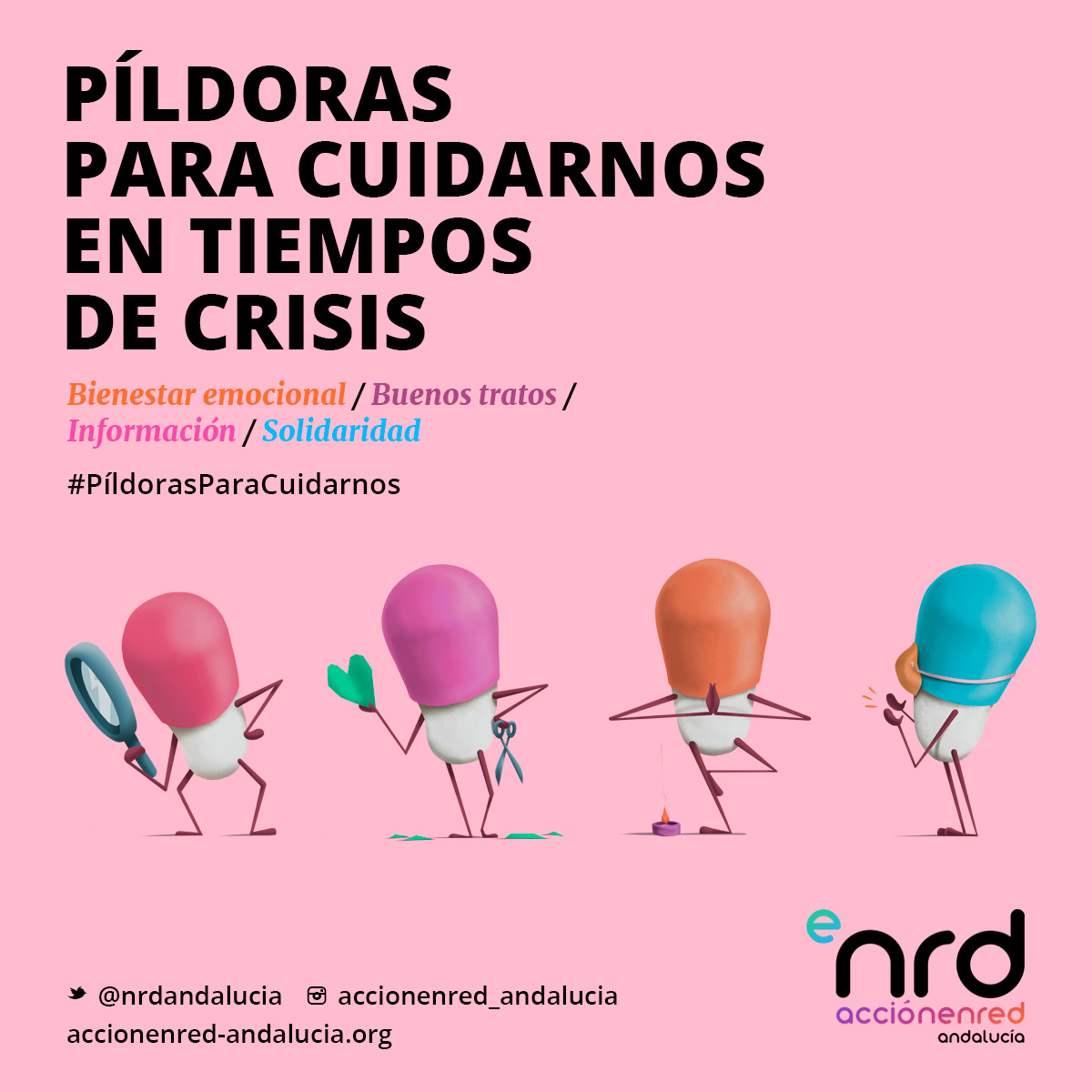 Desde acciónenred Andalucía os queremos presentar nuestras “Píldoras para cuidarnos en tiempos de crisis”, un proyecto que lanzamos como forma de aportar nuestro granito de arena e intentar hacer del confinamiento una situación mejor. Estas “píldoras informativas” (un formato de mensaje breve con información concisa muy común en las redes sociales) se dividen en cuatro bloques temáticos: