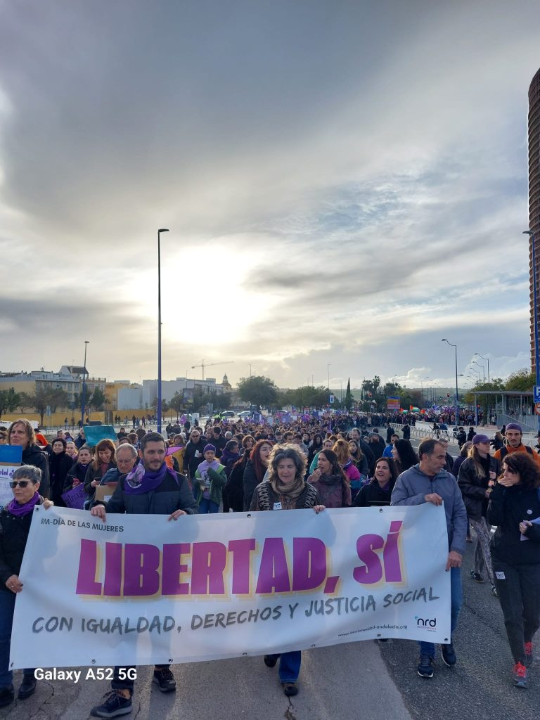 El sábado 8 de marzo celebramos el Día de las Mujeres asistiendo a las manifestaciones de Granada y Sevilla con nuestra pancarta “Libertad sí, con igualdad, derechos y justicia social”.
