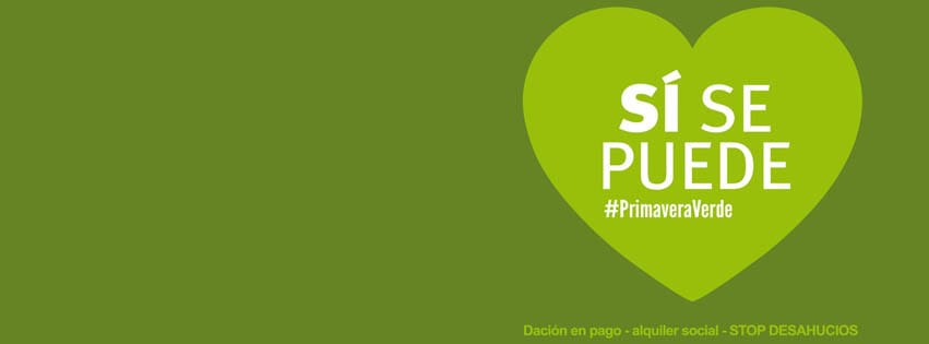 Primavera verde es una campaña de apoyo a la PAH frente al intento de desprestigio del PP, de apoyo a las medidas de la ILP por la dación en pago retroactiva, el alquiler social y la moratoria de desahucios. Para mostrar el apoyo a la PAH y decir alto y claro que ¡Sí Se Puede!