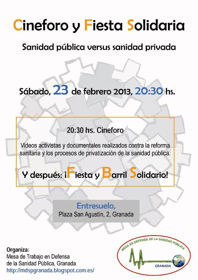 sanidad privada versus sanidad pública. Cineforum y fiesta solidaria.