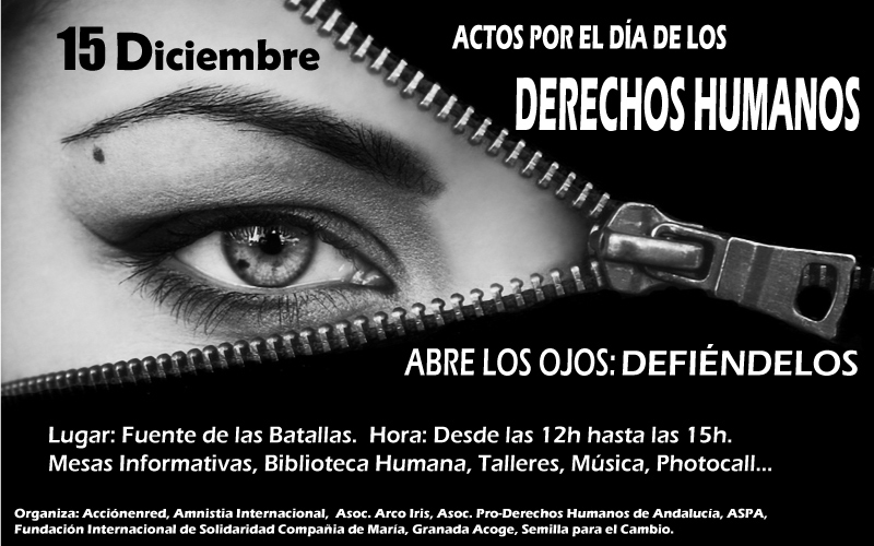 Con motivo de la celebración del 10 de Diciembre, Día Mundial de los Derechos Humanos, diversas organizaciones, ONGs y asociaciones, queremos celebrarlo con la ciudadanía de Granada realizando un acto de denuncia y sensibilización.