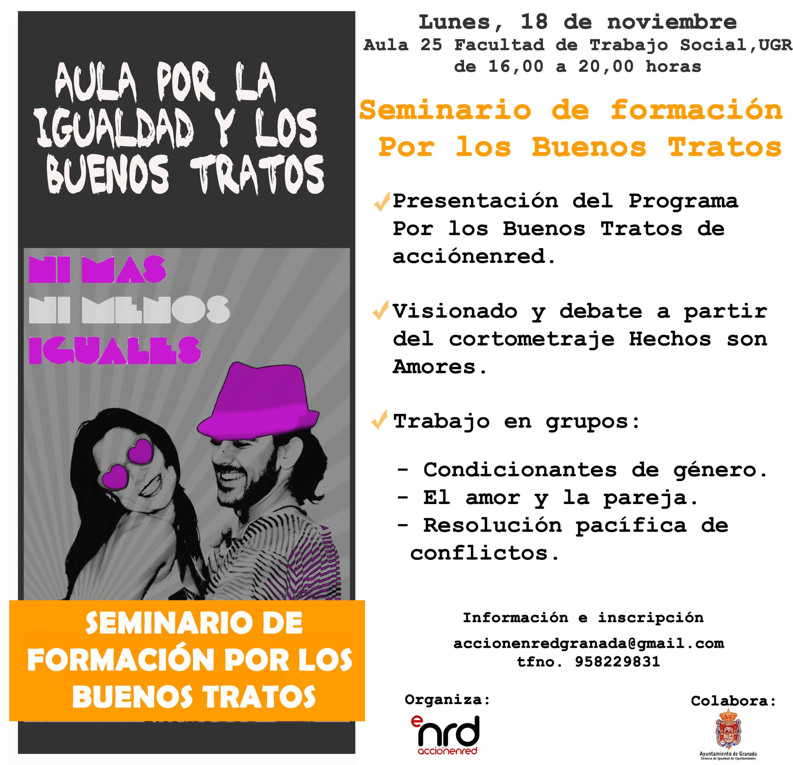 En esta ocasión realizaremos un seminario de 4 horas de duración donde nos centraremos en el Programa por los Buenos Tratos y realizaremos visionado y posterior debate sobre el cortometraje Hechos son Amores.