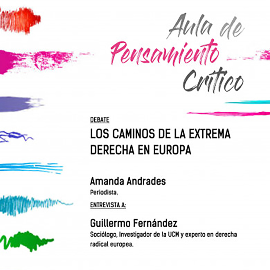 El martes 9 de abril en Sevilla y el miércoles 10 de abril en Granada, celebramos el Aula de Pensamiento Crítico “Los caminos de la extrema derecha en Europa” con Amanda Andrades, periodista y ex responsable de la sección Internacional de la Revista Contexto, que entrevistó a Guillermo Fernández, sociólogo investigador de la Universidad Complutense de Madrid y experto en derecha radical europea, sobre la oleada de conservadurismo que está irrumpiendo en un contexto de crisis de representación política.