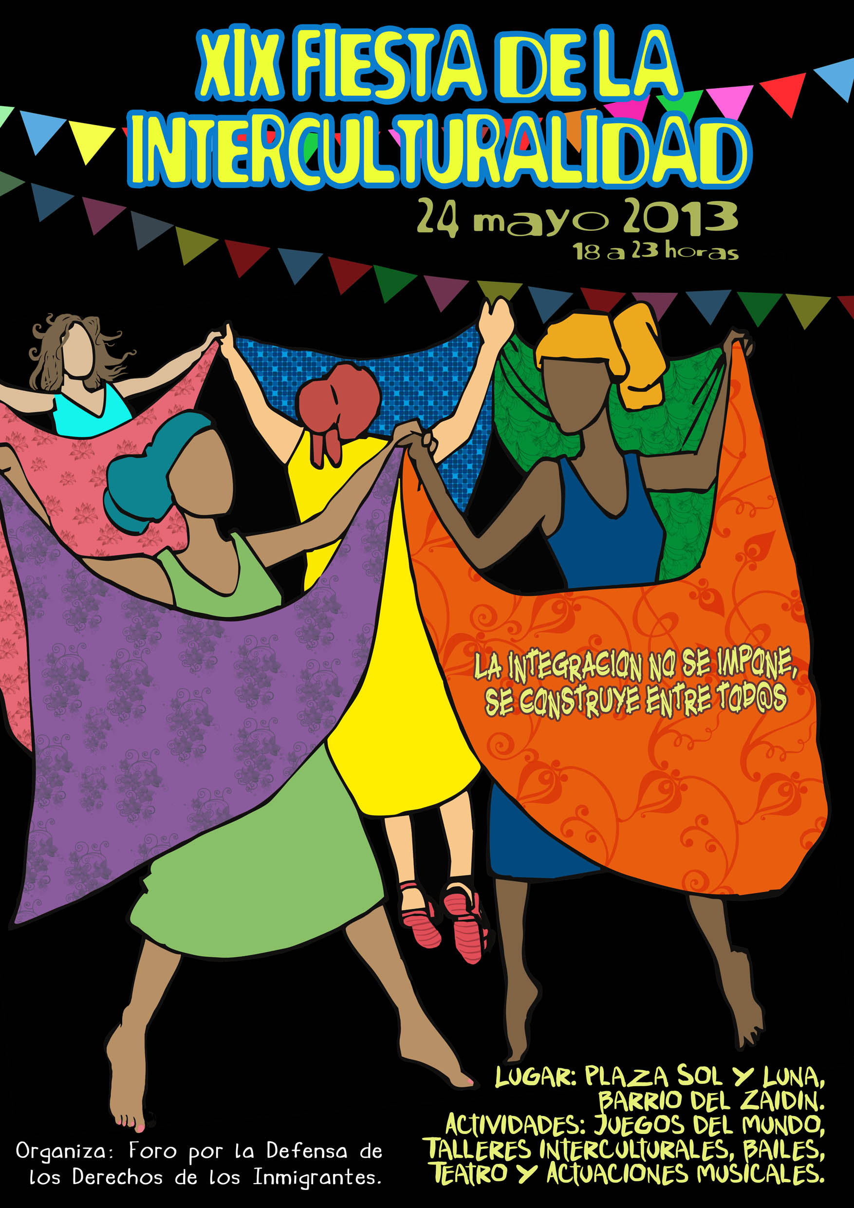 El Foro por la Defensa de los Derechos de los Inmigrantes, en el que participamos acciónenred,  os invita a participar en la XIX Fiesta de la Interculturalidad que se celebrará el viernes 24 de mayo a partir de las 18:00 horas en la Plaza Sol y Luna del Zaidín.