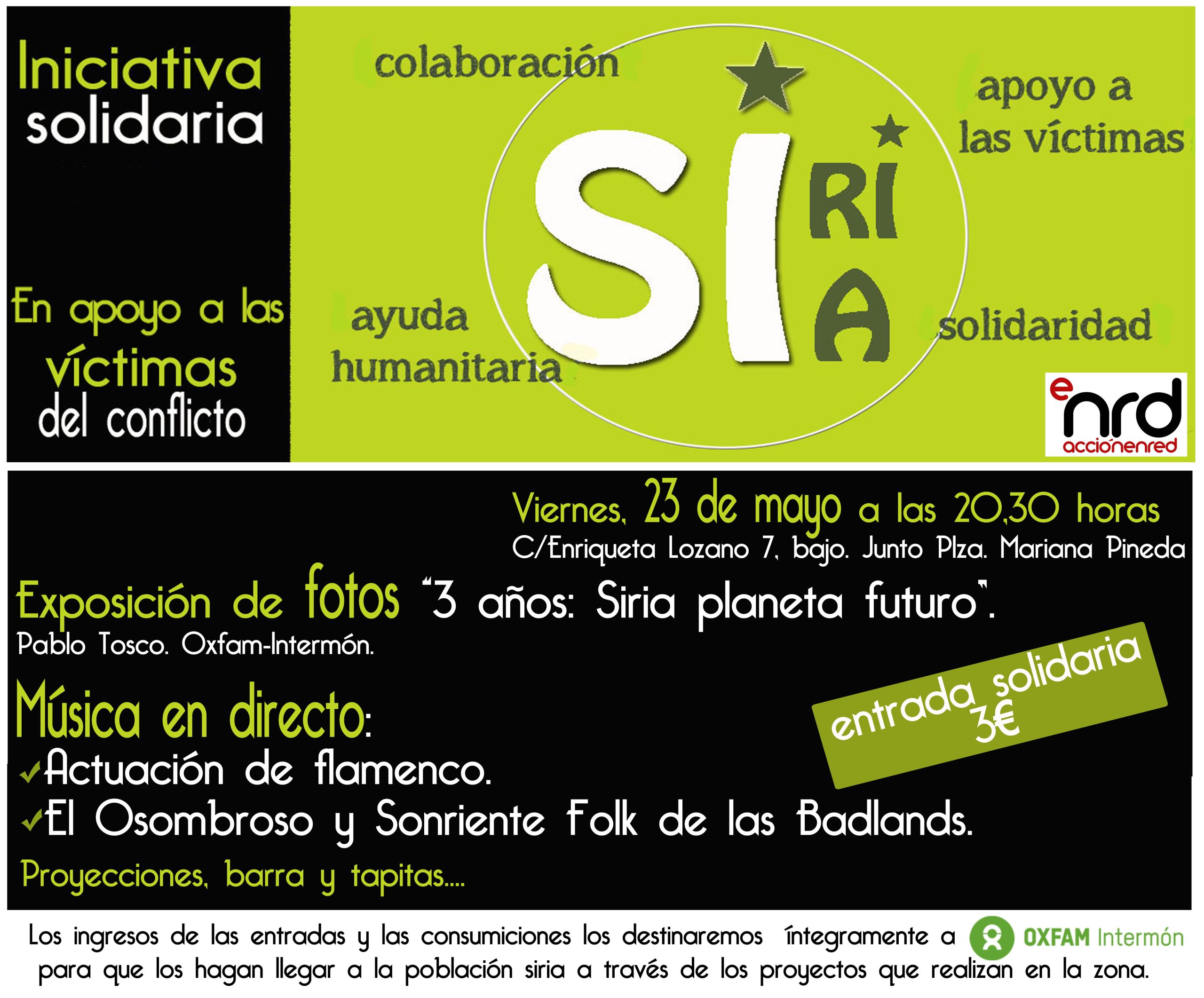 Desde acciónenred queremos mostrar nuestra solidaridad con el pueblo sirio y contribuir a la movilización de esfuerzos y ayuda humanitaria a través de esta iniciativa solidaria, a la vez que contribuimos a sensibilizar y a denunciar las consecuencias sobre la población civil de este conflicto que comenzó hace ya más de tres años.