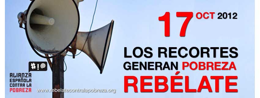 - Concentración: ‘Los recortes generan pobreza, rebélate’. Nos hacemos oír contra la pobreza. 17 de octubre de 2012. De 19 a 21 horas. Plaza Virgen de los Reyes de Sevilla. Sesión multitudinaria de percusión (Tierra Percusión): acude con tu propio utensilio de percusión (pequeña sartén, tapa de cacerola... y cuchara o palo de madera). Música por la cooperación al desarrollo (Banda Santo Cristo Varón de Dolores)