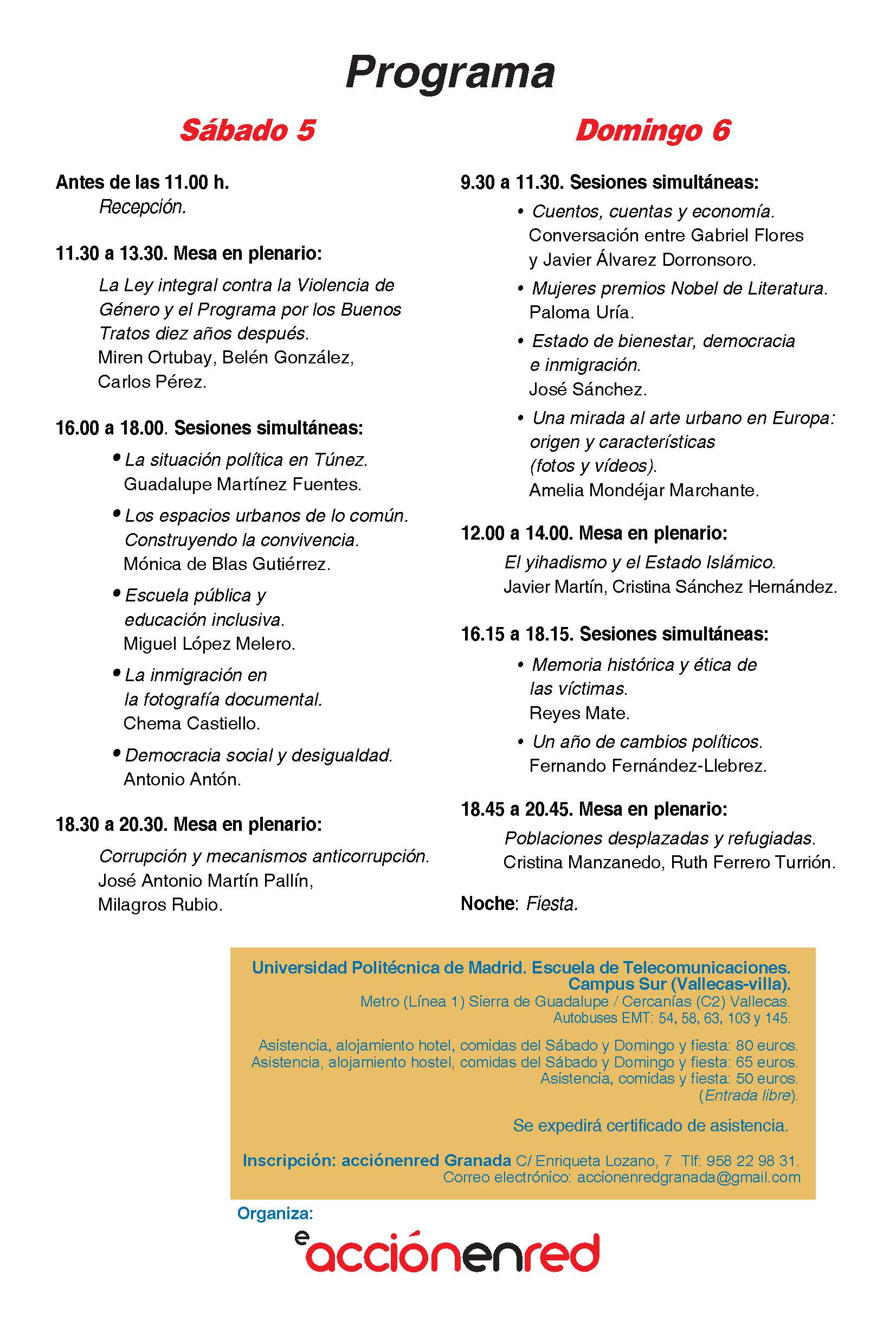 Más información e inscripciones en accionenredgranada@gmail.com y en el télefono 958 22 98 31