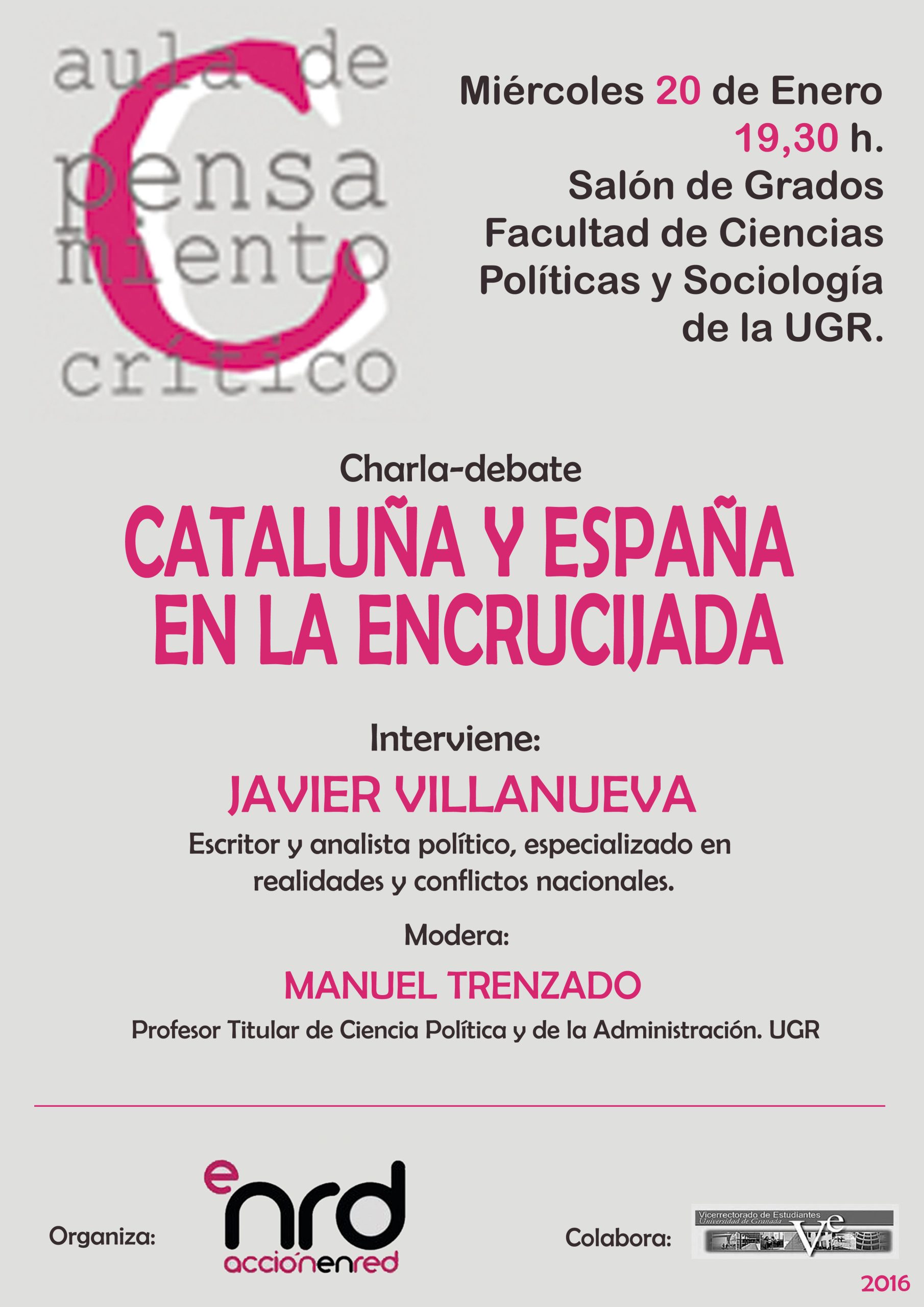 Desde acciónenred Granada queremos invitaros a la próxima sesión del Aula de Pensamiento Crítico, "Cataluña y España en la encrucijada", que tendrá lugar el próximo 20 de enero y en la que intervendrá Javier Villanueva, escritor y analista político, especializado en realidades y conflictos nacionales.