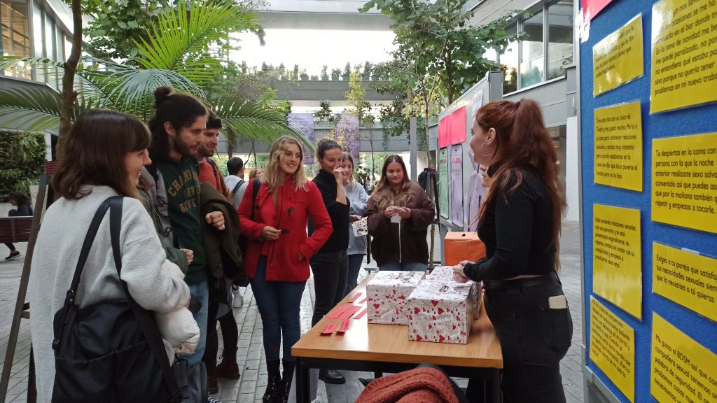 Y, finalmente, el pasado día 12 de diciembre, cerramos el proyecto con la “Feria de Educación Sexual” en la Facultad de Ciencias de la Educación. A lo largo de la tarde presentamos al alumnado diferentes juegos sobre etiquetas, consentimientos, sexting, el deseo sexual y la educación sexual, preparados dentro del espacio de aprendizaje y servicio. Un espacio en el que pudimos charlar, resolver inquietudes y aprender de los jóvenes de forma lúdica y divertida. (Leer más)