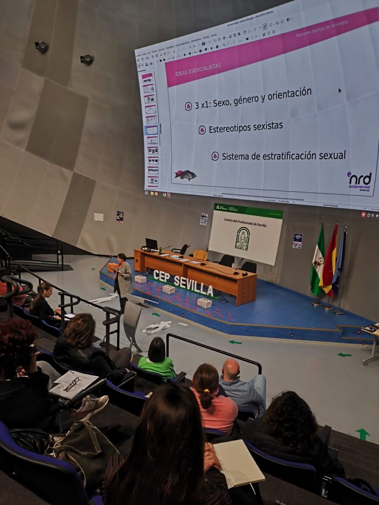 Durante el mes de abril hemos impartido el curso “Afrontar la diversidad sexual y de género en los centros educativos” en el Centro de Profesorado de Sevilla en el que han participado una treintena de docentes. A lo largo de todo el mes, hemos realizado tres sesiones formativas en las que hemos abordado cuestiones relacionadas con la sexualidad, identidades de género, buenos tratos y cómo hacer llegar a nuestros jóvenes narrativas constructivas..