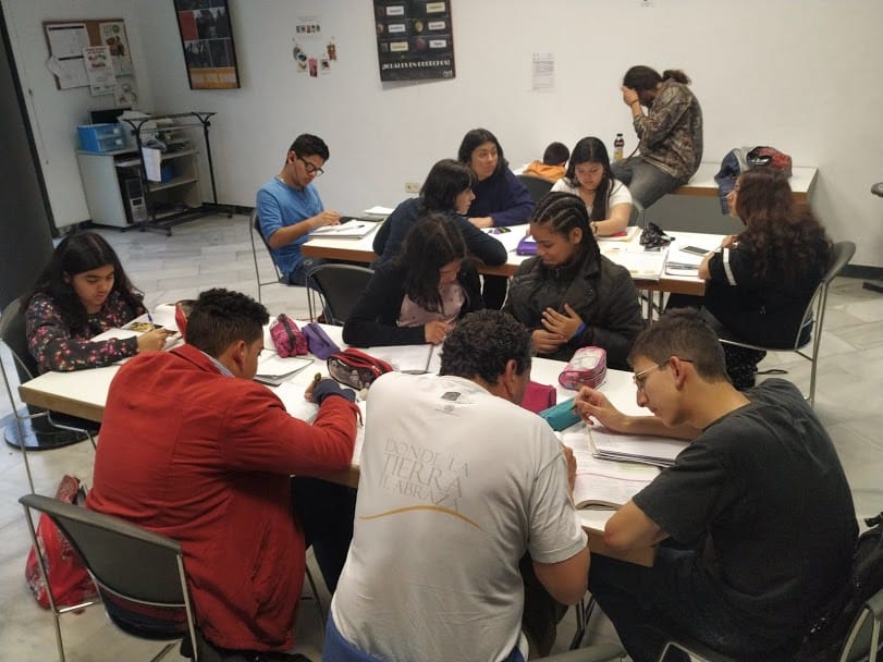 Este curso son más de 40 los jóvenes que acuden a nuestros locales para recibir clases de apoyo escolar a través de los proyectos socio-educativos que impulsamos desde Granada y Sevilla. En este espacio colaboran actualmente 29 personas voluntarias que se vuelcan durante 2 horas a la semana para lograr una mejora de los resultados académicos y favorecer los procesos de integración del alumnado.